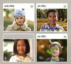Die Besonderheit dabei: Im Gegensatz zu den meisten anderen Angeboten verzichtet Rosetta Stone nahezu komplett auf Übersetzungen in die Muttersprache des Lernenden und ist damit fast komplett einsprachig ausgelegt. Beim Vokabellernen stehen statt Worttabellen Bilder im Mittelpunkt. Die englischen Wörter "man" und "woman" etwa werden durch gegenübergestellte Bilder eines Mannes und einer Frau eingeführt, die vollständig selbsterklärend sind. Im nächsten Schritt, wenn Verben eine Rolle spielen, lässt sich die Bedeutung von "The man is walking" beim Bild eines laufenden Mannes wiederum einfach erschließen.